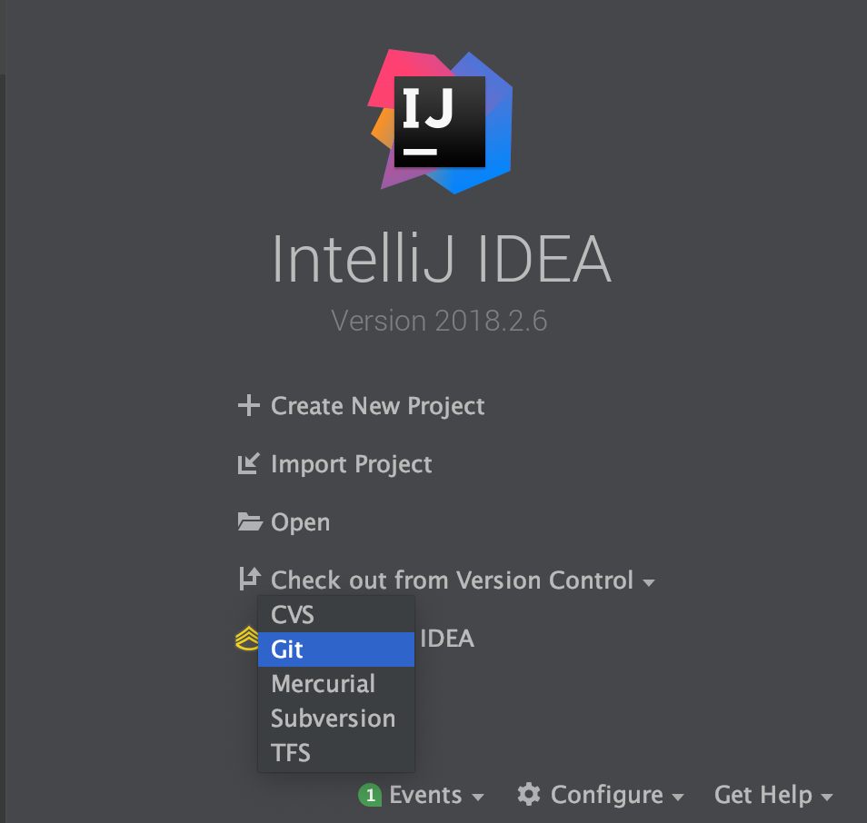 [Check out from Version Control] > [Git] 을 클릭한다.