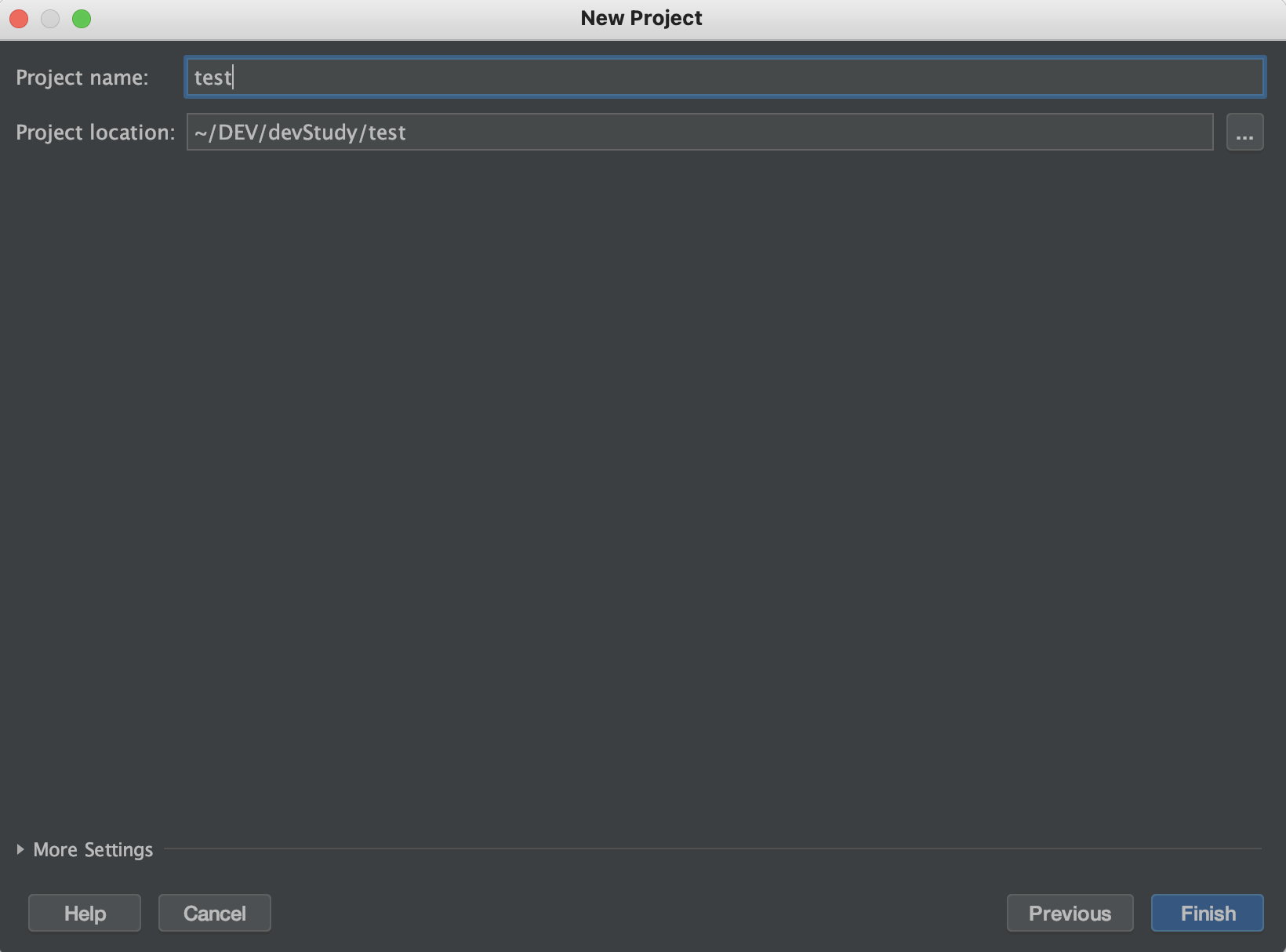 Project Name 은 앞의 과정에서 입력한 ArtifactId와 동일하게 입력한다.