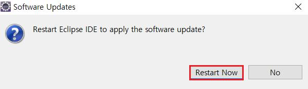 [Restart Now] 버튼을 클릭해 이클립스를 재시작합니다.