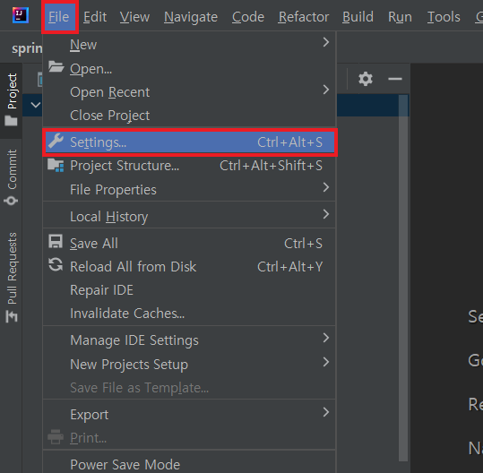 [File] > [Settings...] 클릭